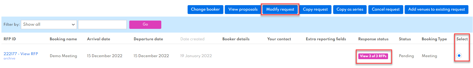If you want to modify a pending request (the request is not made into a definite booking yet), go to “Pending proposals” under the 'My requests' menu.