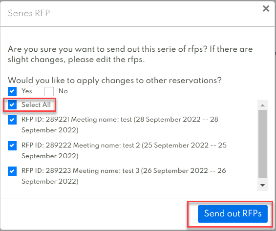 If the request is part of a series of bookings, you can specify which booking should be modified for each request.