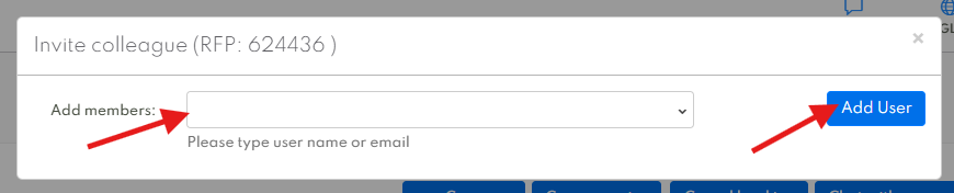 Enter the email address of the colleague you wish to add to the request/booking and click on ‘Add User’.