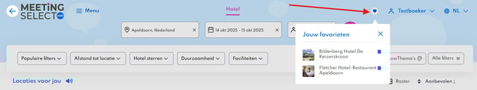 Om de lijst te bekijken kunt u rechts boven in uw scherm op het hartje klikken en dan vouwt de lijst met uw favoriete locaties uit.