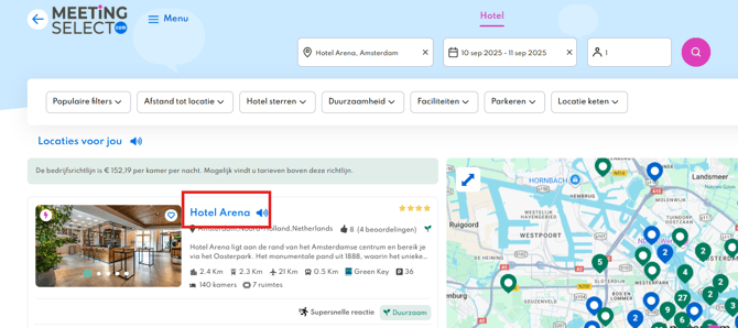 Informatie over het hotel Als je klikt op de naam van het hotel waar jouw interesse naar uit gaat, dan kan je hier direct meer informatie zien over het hotel, foto’s bekijken en beoordelingen van andere zakelijke boekers terugvinden.