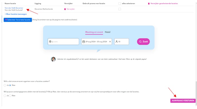 De locatie zal dan direct aan jouw boeking toegevoegd worden. Voor het afronden van de boeking klik dan op “Aanvraag versturen”.
