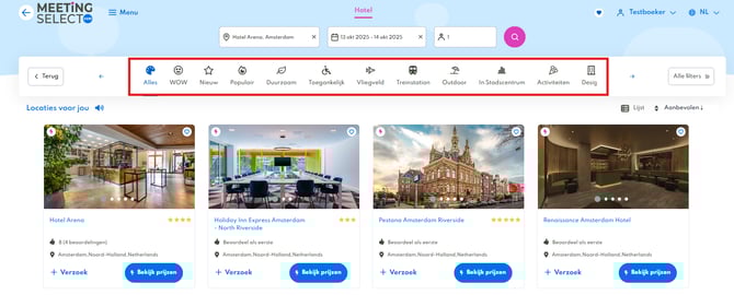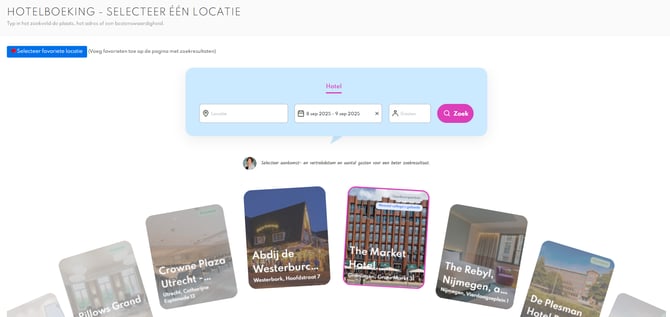 Je ziet dan de real-time beschikbaarheid en de instant tarieven per locatie voor die datum. Dit is te herkennen aan de roze kleur.